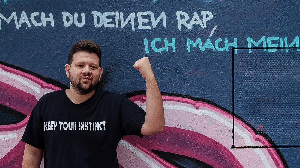 Richtig mit Hiphop infiziert wurde ich durch Westberlin-Rap und hab das sehr gefeiert. Die provokative Attitüde von Royal Bunker, Tabus zu brechen und dabei der Musikindustrie den Mittelfinger zu zeigen, hat mich geprägt. Je älter ich werde, desto mehr verstehe ich auch verschiedenste Stile und öffne mich auch für Hiphop, der nicht unbedingt meinen eigenen Rap-Roots entsspricht. Ich mag Gangster-Rap. Ich kann auch dem Poser-Marken-Rap etwas abgewinnen, sehe das aber natürlich kritisch. Man sucht als verlorene Generation – meine Generation war auch schon verloren – irgendwo Halt. Und dann sucht man sich mit 16, 17 diesen Blödsinn aus. Das kann ich noch verstehen.